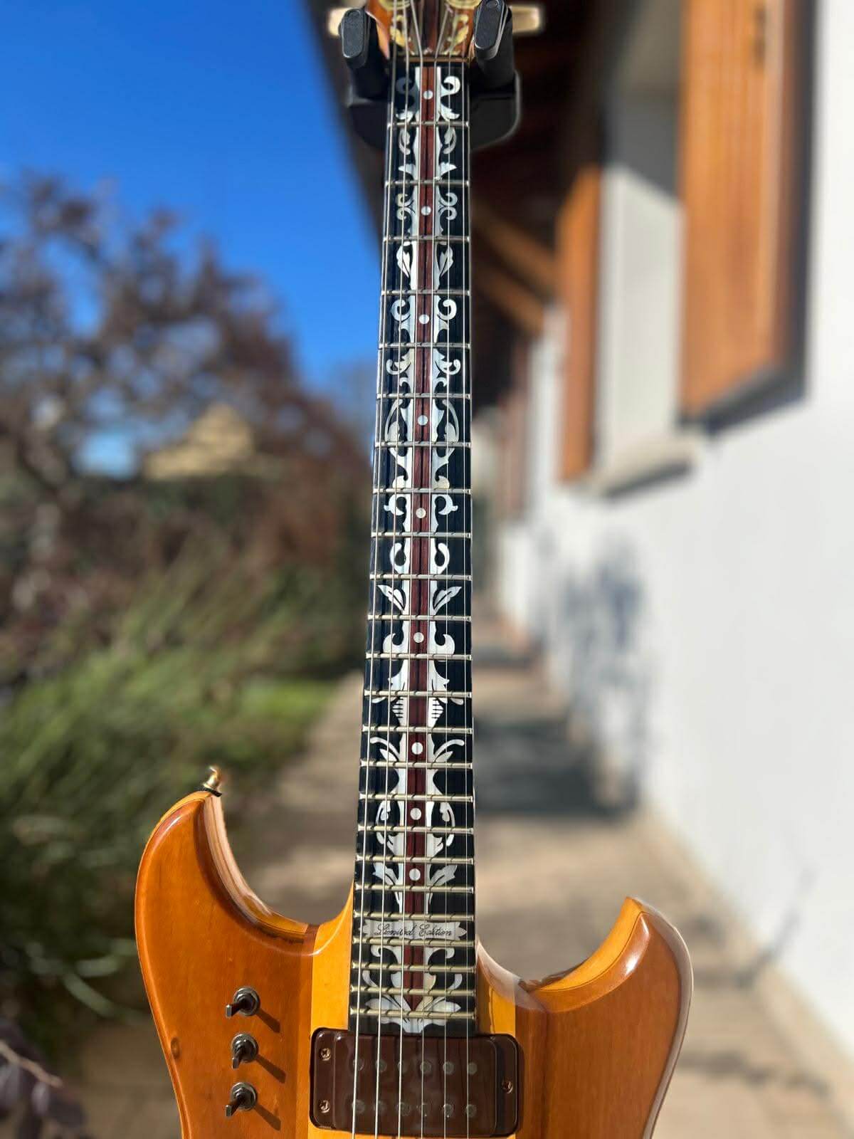 “As I was told by the guy I bought the guitar from, it was exhibited at the Musikmesse in Frankfurt in the late 1970s. A Belgian guitar shop called JnR took it to Belgium where it was sold to the guitarist of a band called The Sunrock. 15 years later I started playing with this band and bought the guitar.